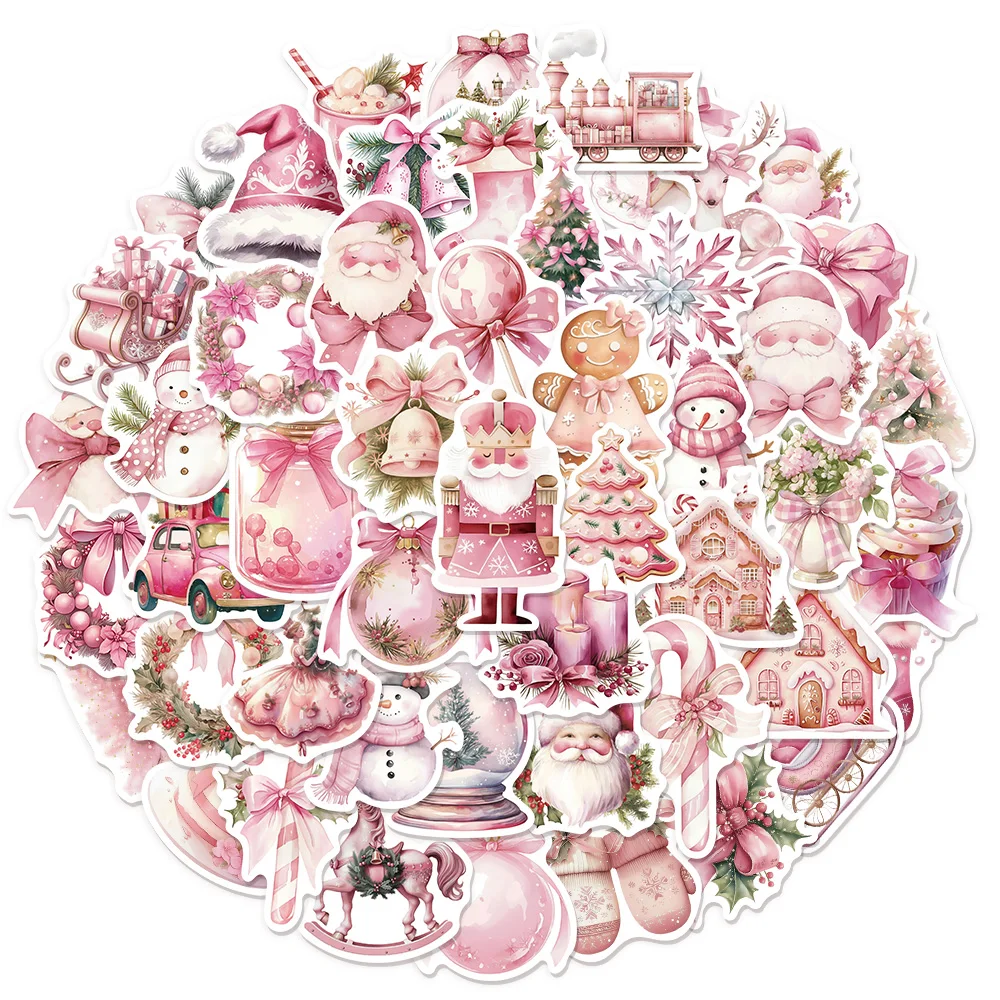 50PCS Creative Pink Christmas Gift Graffiti Stickers DIY Luggage Notebook Water Cup Computer Waterproof Stickers $3.51
