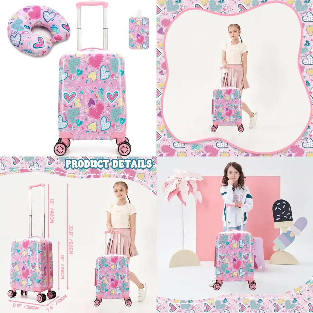 Kid's Luggage Set 16inch 2 Piece Suitcase Set Hardside Luggage with Spinner Wheels Girls Carry on Toddler Travel Rolling Suitcas $60.82