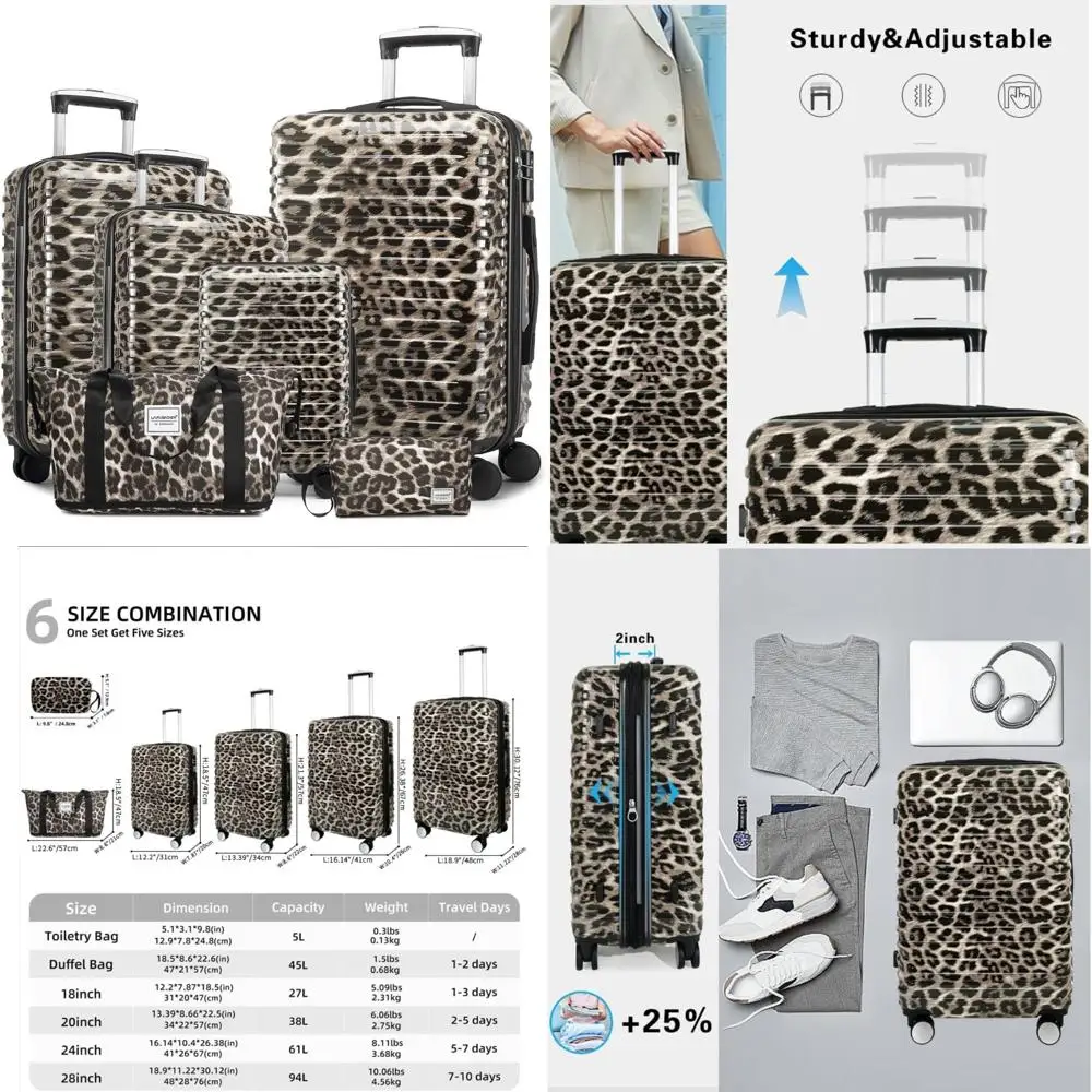 Expandable Hardshell PC+ABS Luggage Set - 6 Piece Leopard Print with Spinner Wheels, TSA Lock, Lightweight Rolling Suitcase for $152.17