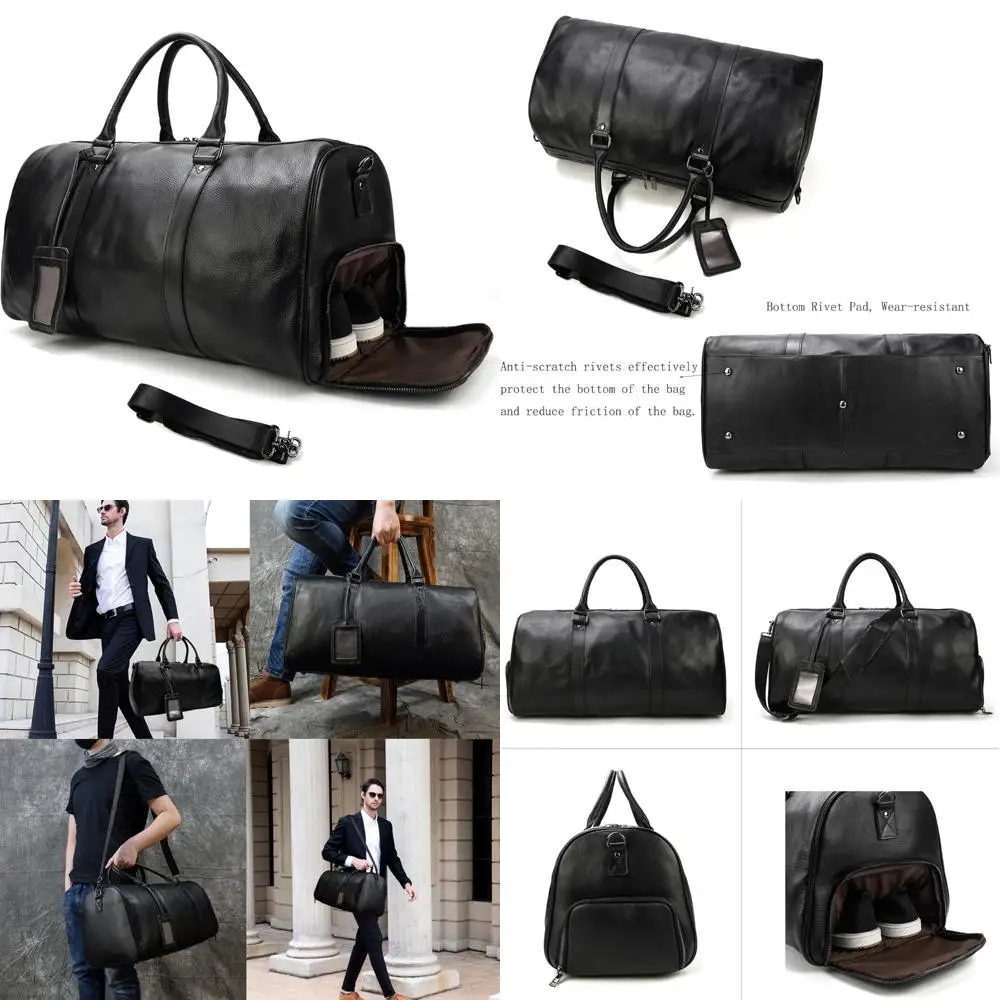 Large Capacity Leather Duffel Bag with Shoe Compartment - Weekend Travel Luggage for Men and Women, Ideal for Holiday Business T $150.47