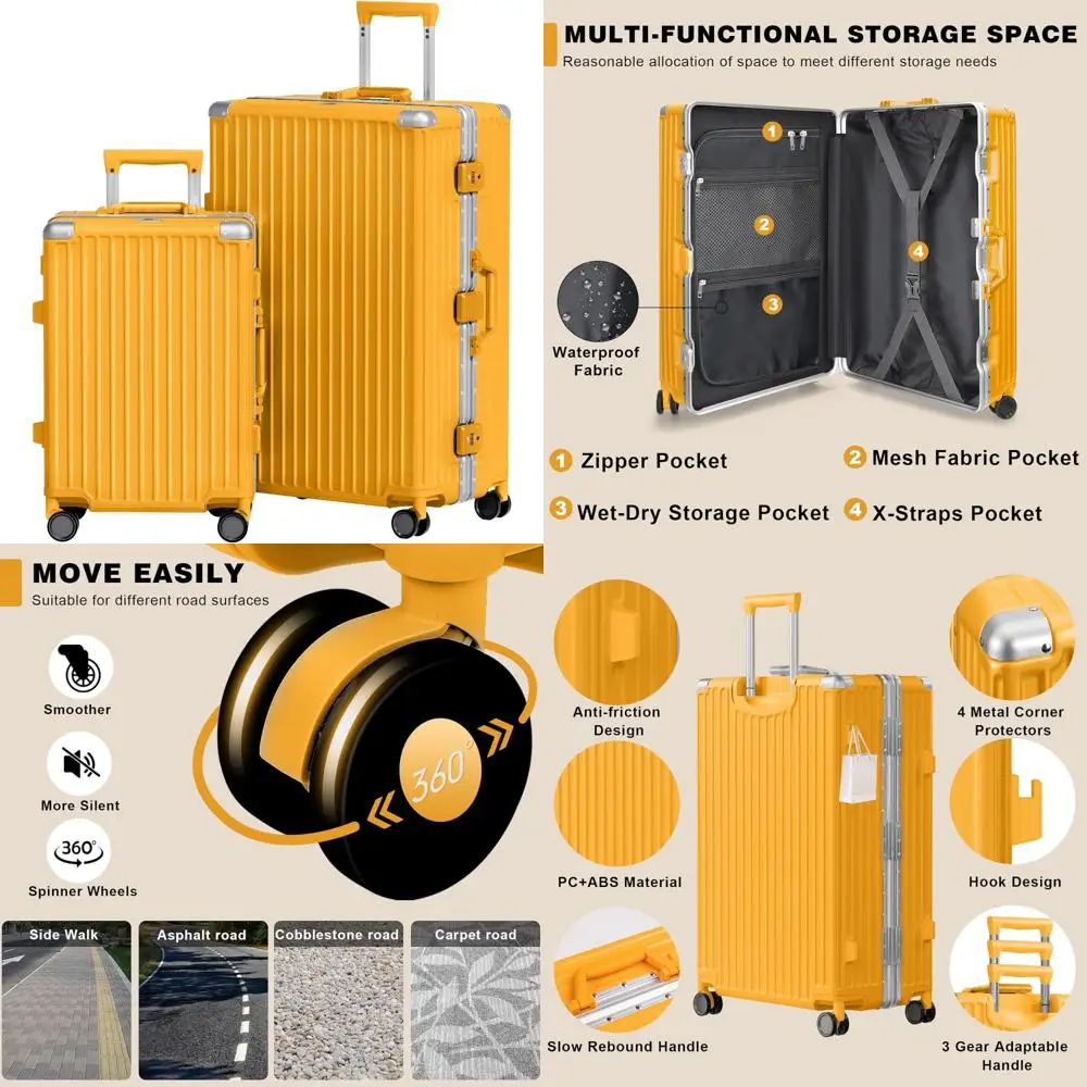 Aluminum Framed Carry-On & Checked Luggage Set - Hard Shell TSA Lock, PC-ABS Material, No Zipper, Orange, 20/28 Inch Travel Suit $258.61