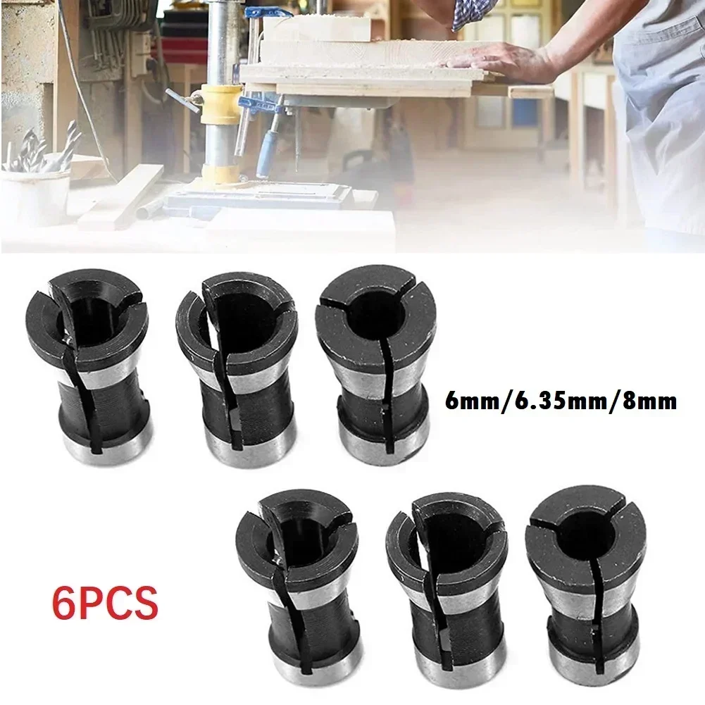 6pcs/set Collets Adapter 6.35mm 8mm 6mm Collet Chuck Engraving Trimming Machine Electric Router Milling Cutter Accessories $9.34