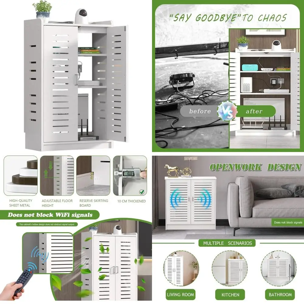 20x31x10 Large Floor Standing Wii Router Cabinet with Cable Management and Organizer for Power Strips & Network $112.39