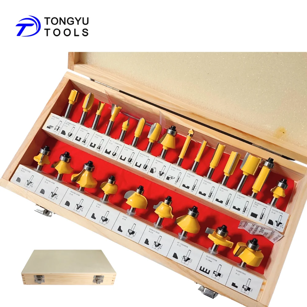 24Pcs Wood Router Bit Set Tungsten Carbide Tipped with 1/4 Inch(6.35mm) Shank in Wood Box for Woodworking $41.54