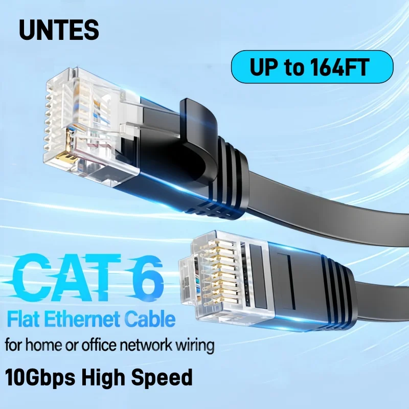 UNTES Cat6 Flat Ethernet Cable, 10Gbps Support Cat6a Cat7 Network, 30AWG RJ45 Internet Cable for Router, Modem, Switch, Gaming $4.45