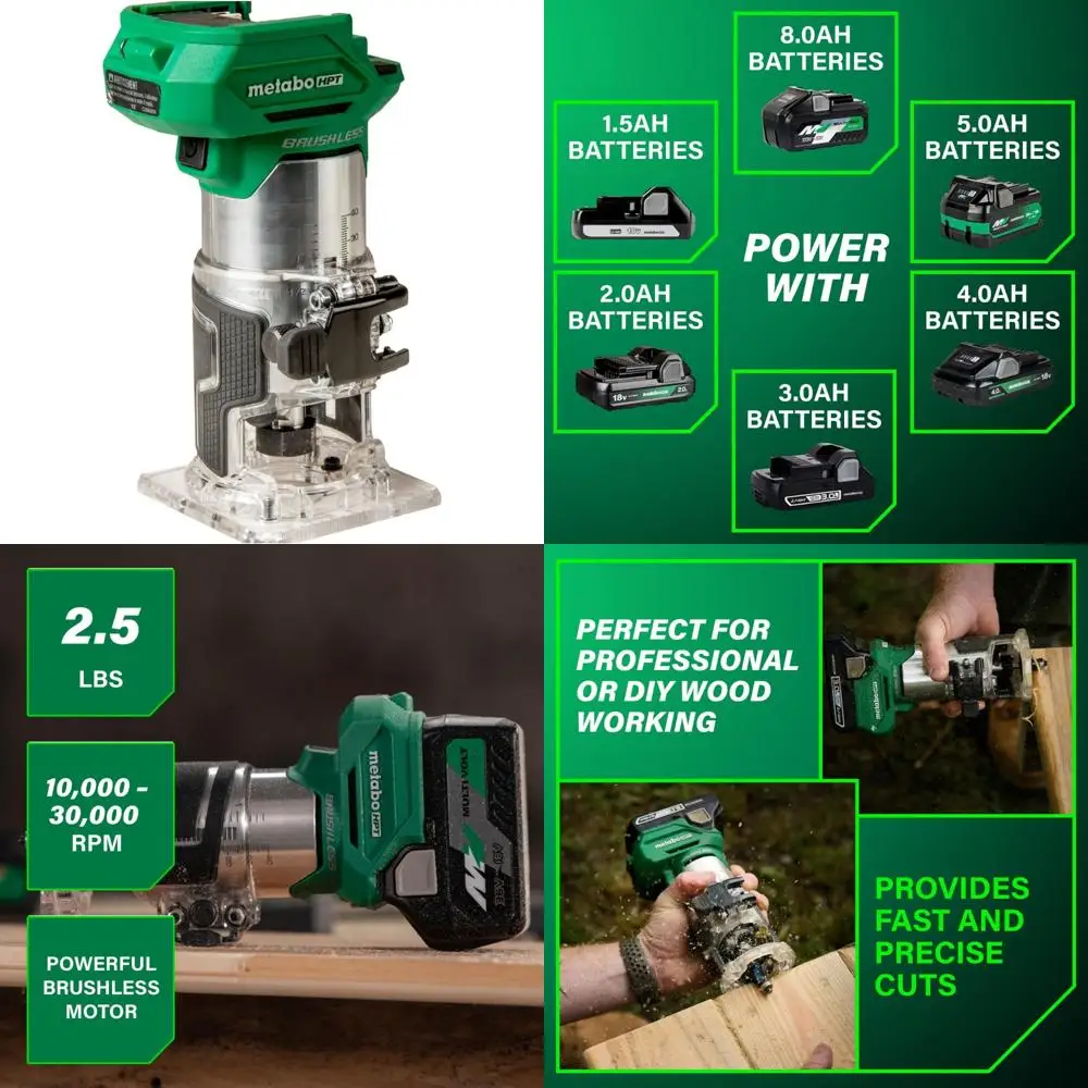 Metabo 18V Cordless Trim Router with Variable Speed 10,000-30,000 RPM, Lightweight Design, and Collets for 1/4-Inch and 3/8-Inch $123.59