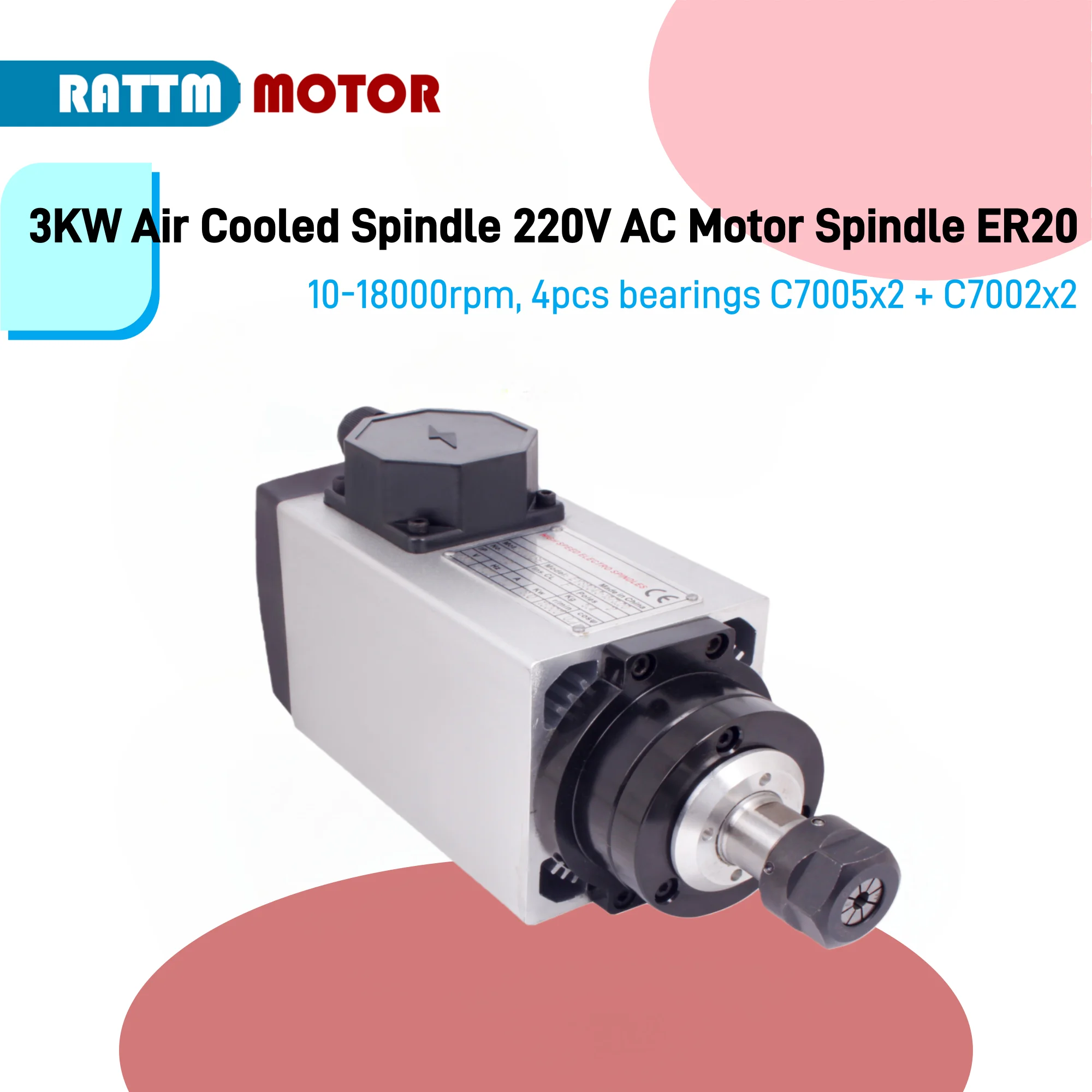 RATTM MOTOR 3KW ER20 CNC Air Cooled Spindle Motor Square 300Hz For Woodworking Router Engraving Milling Machine $228.96