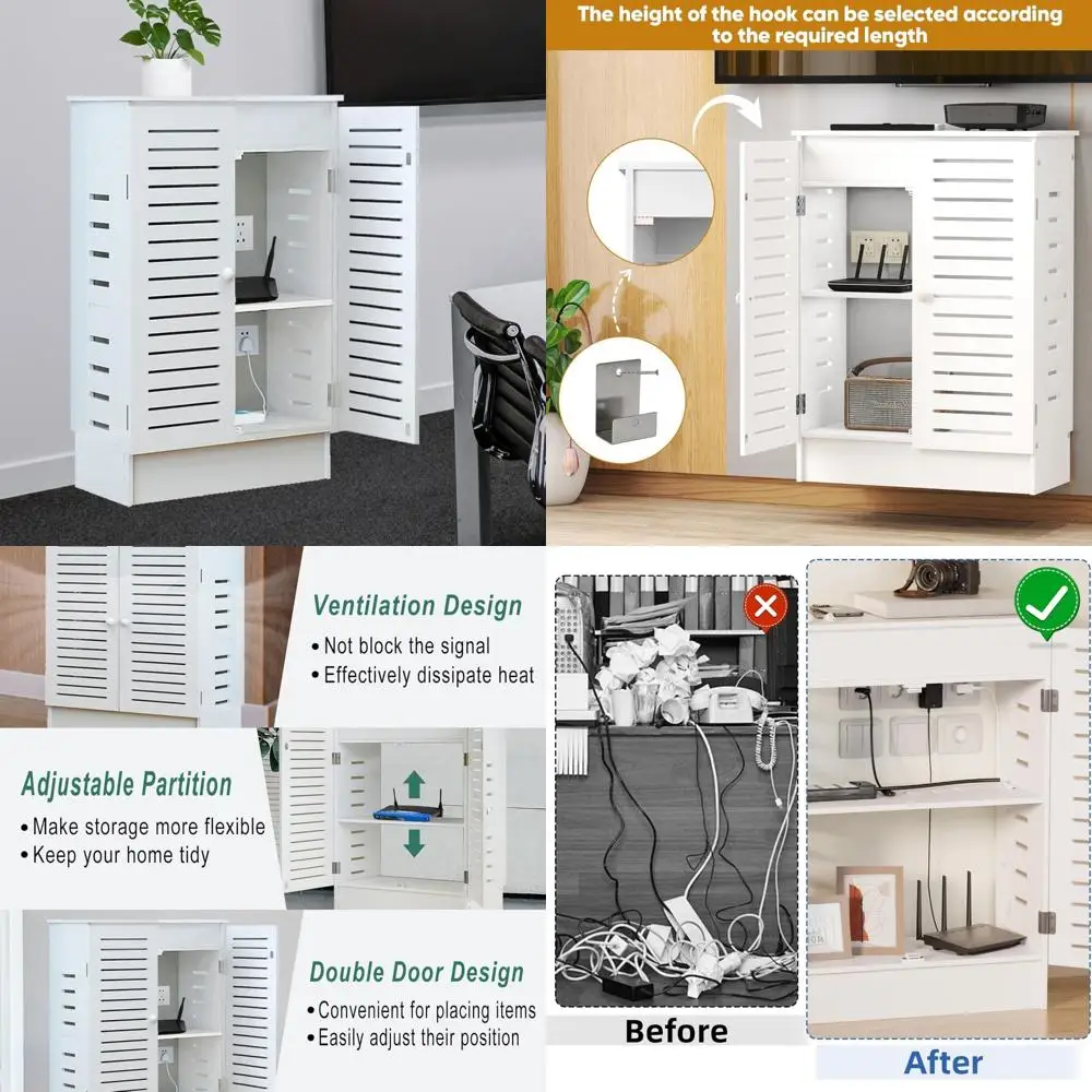 WiFi Router Storage Cabinet, Floor Standing Router Storage Box Modem, Power Strip Cable Management Hider Organizer, Router Modem $71.92