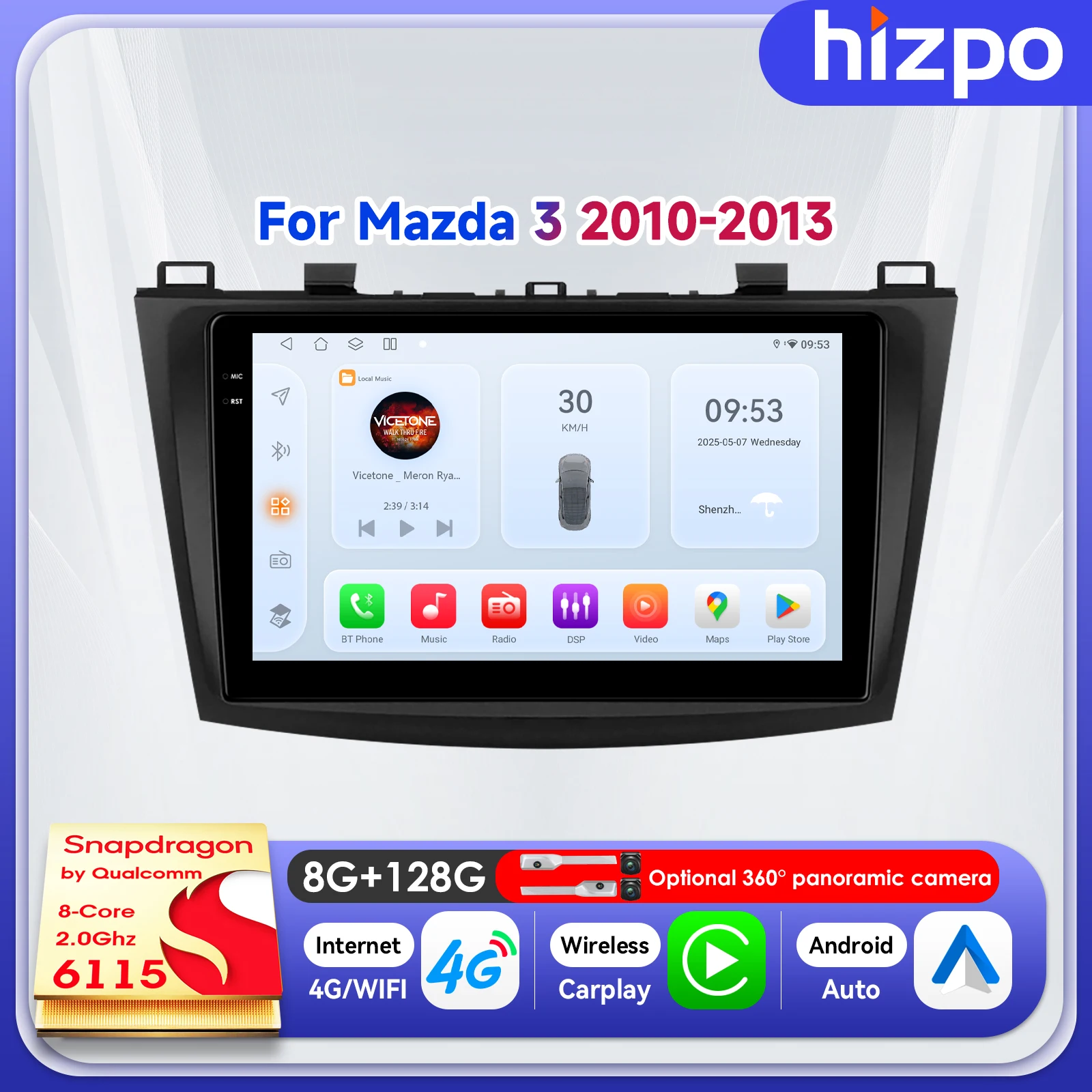 Hizpo 9 Inch Car Multimedia Carplay For Mazda 3 2010 - 2013 Head Unit Smart Monitor Autoradio Radio Navi 4G by Snapdragon 6115 $88.62