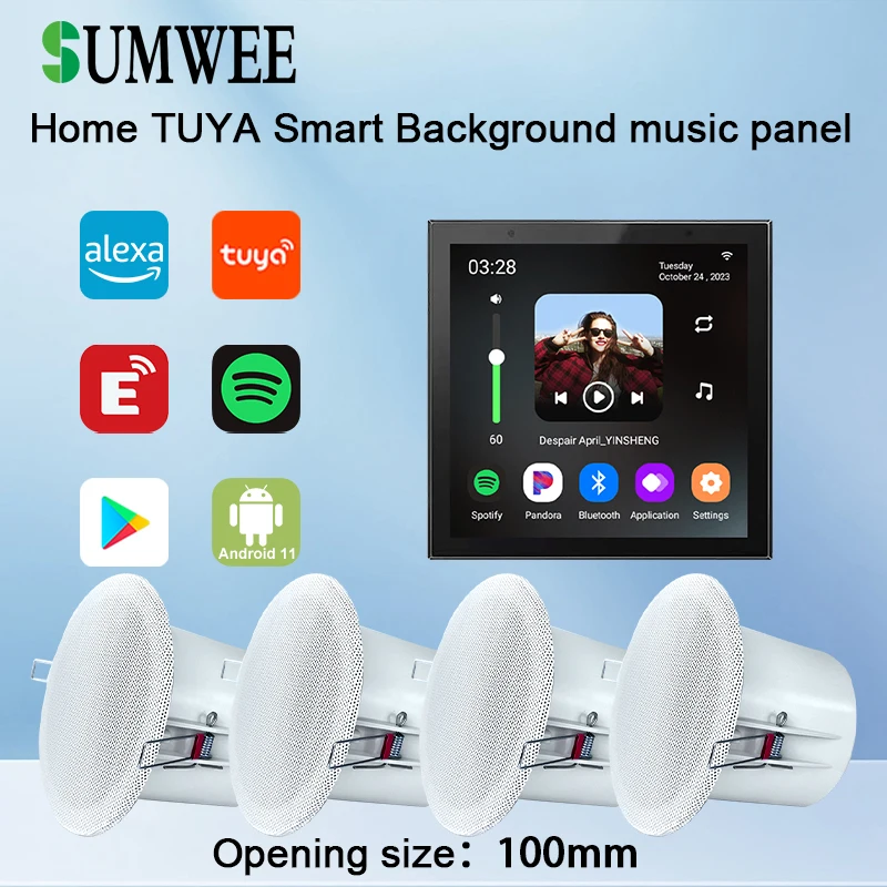 Home Smart audio system 4 inch touch screen sound wall amplifier TUYA control panel WIFI Bluetooths music player ceiling speaker $101.95