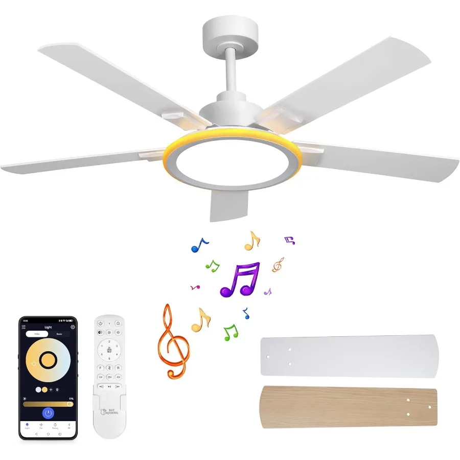 Smart 52 Ceiling Fans with Lights Bluetooth Ceiling Fan with Speaker 6Speeds DC Reversible Noiseless Motor FullSpectrum EyeCare $143.12