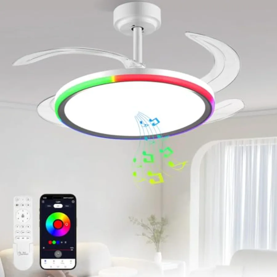Slim RGB Retractable Ceiling Fan with Light and APP Remote Control 42inch Modern Smart Ceiling Fan with Bluetooth Speaker Dimma $125.78