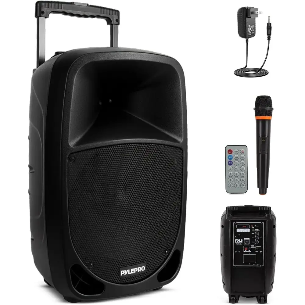 1000W Portable Bluetooth PA System with 10 Subwoofer, Wired Mic, MP3/USB/SD, Rechargeable Battery, LED Indicator, Black $74.84