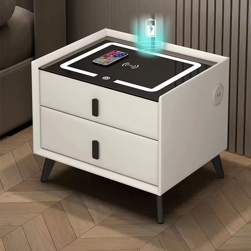 ZCharging Smart Nightstand Fingerprint Lock Bluetooth Speaker Bedside Table Luxury Storage Bedroom Criado Mudo Office FurnitureZ $629.17