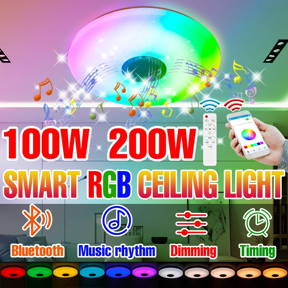 200W RGB Smart Ceiling Light LED Dimmable Chandelier AC100-240V With Speakers Music Lamp Bluetooth Connection APP Remote Control $35.73
