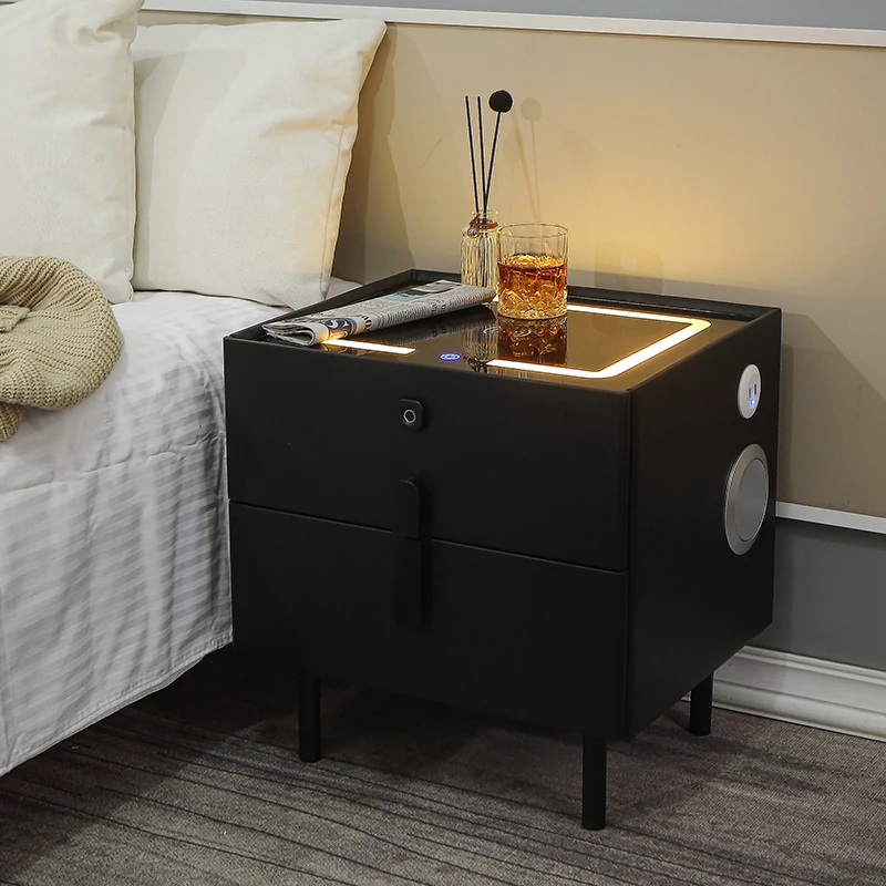 Luxury Leather Smart Metal Bedside Table Bedside Table Solid Wood Bed Side Cabinet End Table with Speakers $107.54