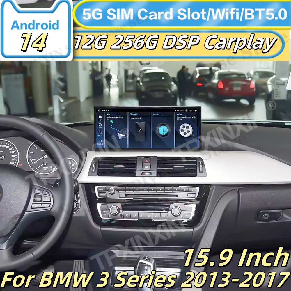 15.9 Inch Smart HD Screen Carplay Mirror Link For BMW 3 Series 2013-2017 Android 14 GPS Multimedia Stereo Head Unit Offline Maps $430.00