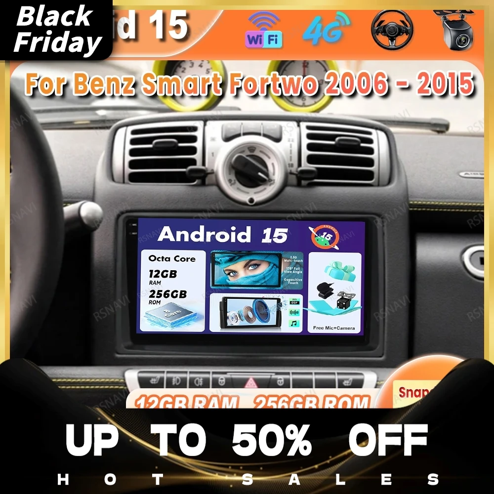 Car Radio Android 15 For Benz Smart Fortwo 2006 - 2015 Navigation Stereo Wireless Carplay Auto Multimedia GPS DSP Autoradio QLED $80.60