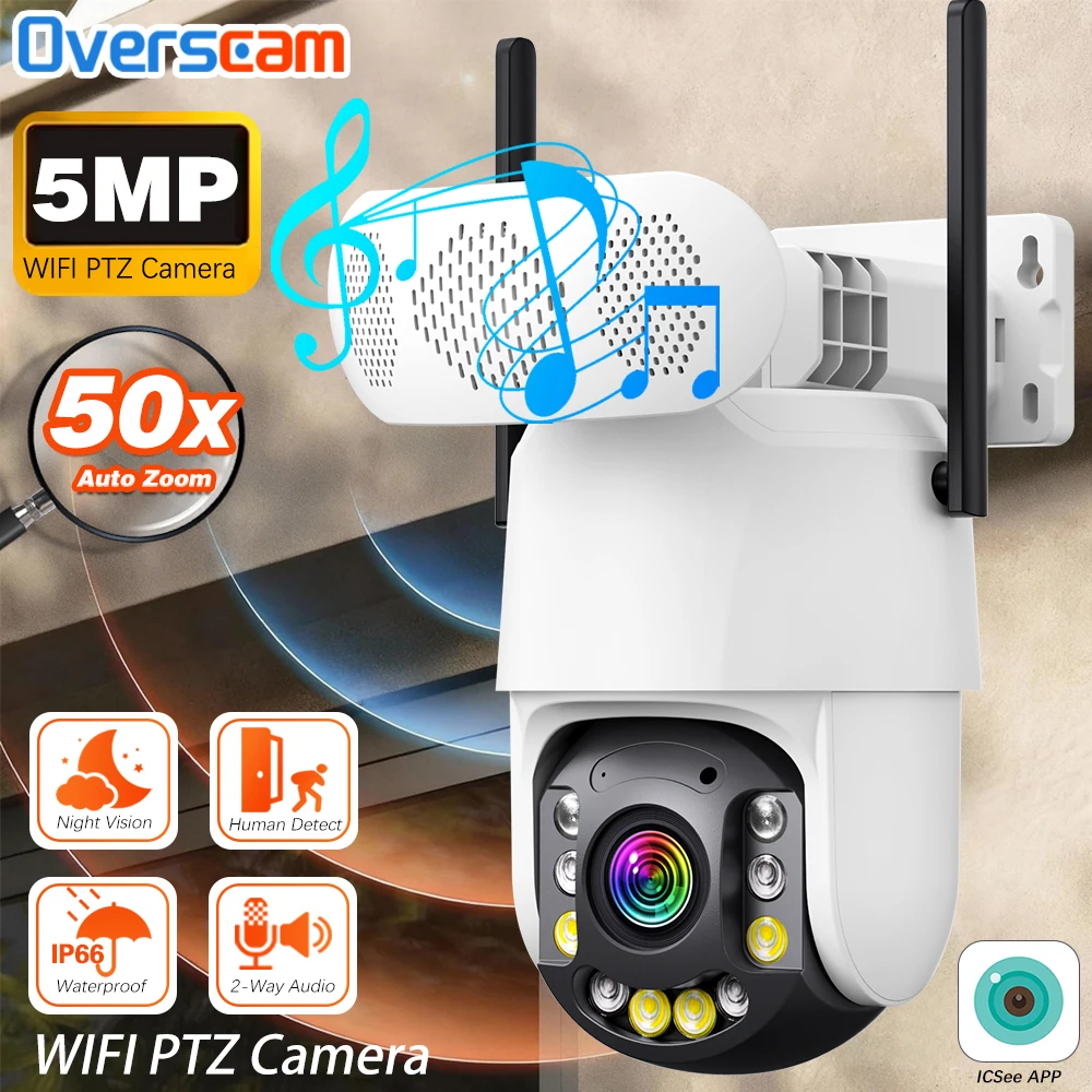 Bluetooth Speaker 5MP Wifi PTZ 50X Zoom Camera Waterproof Outdoor Wireless Cctv Security Color Night Vision IP Camera ICsee App $100.82