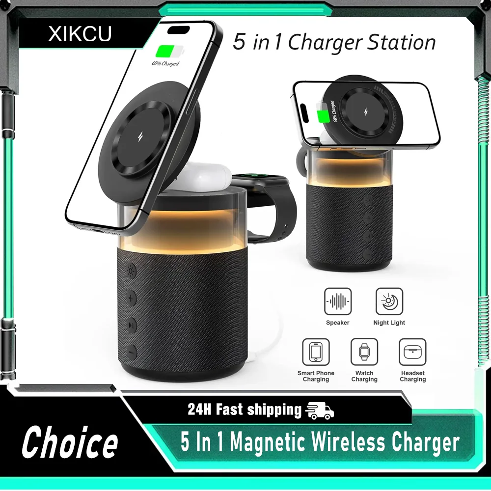 Magnetic Multi-functional Wireless Charger Night Light Speaker For Apple Watch&iPhone 17 16 15 14 13 12 Pro Max&AirPods 4/3 Pro $39.49