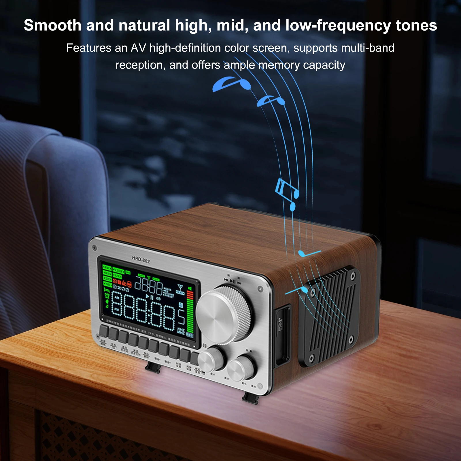 Full-Band Radio Smart Wooden Radio Receiver BT Speaker Radio FM/MW/SW/VUHF/AIR/WB Wooden Cabinet Radio Dual Speaker System $126.19