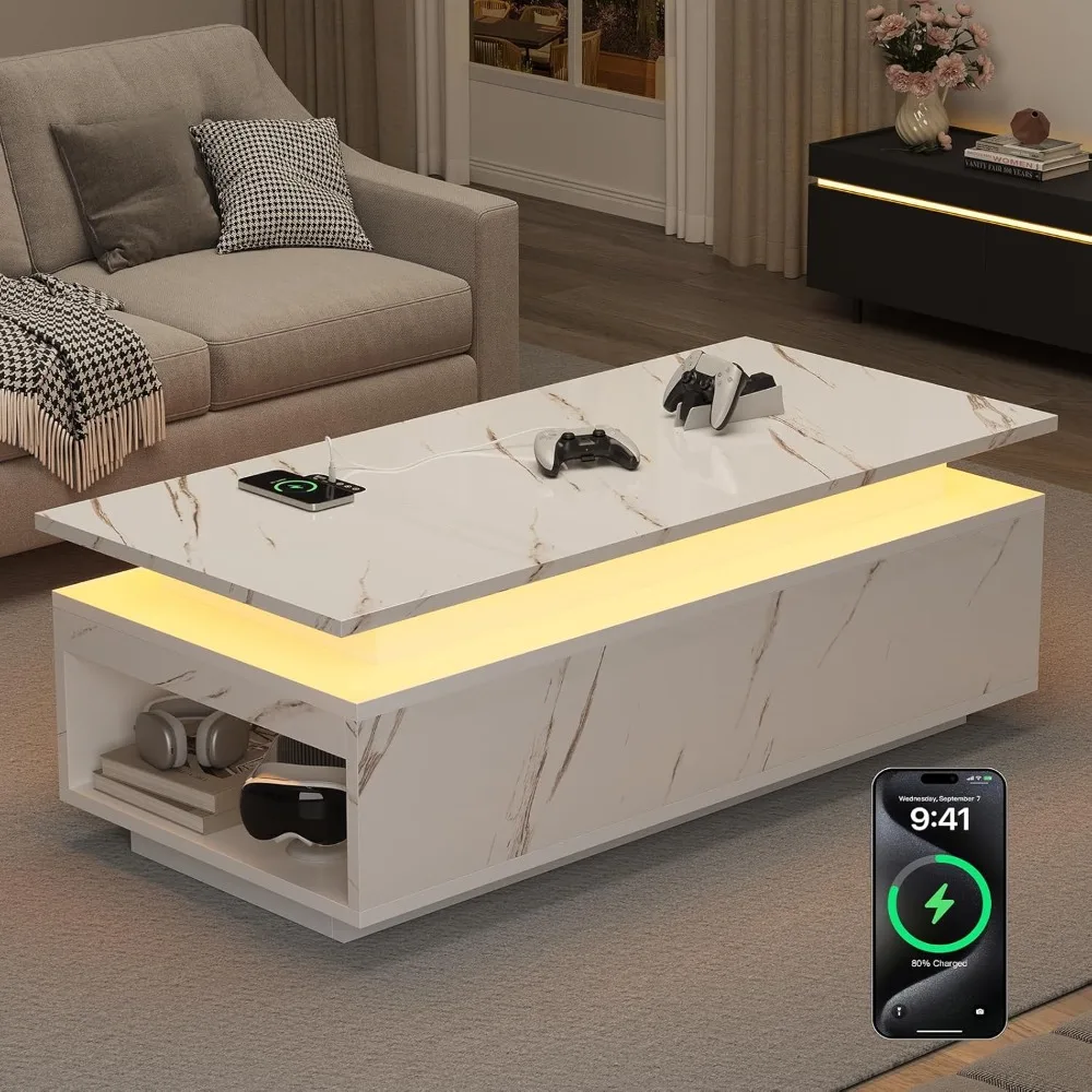 LED Coffee Table, 47.2" Coffee Tables for Living Room with Wireless Charging & Bluetooth Speaker, Smart Center Table for Living $115.35