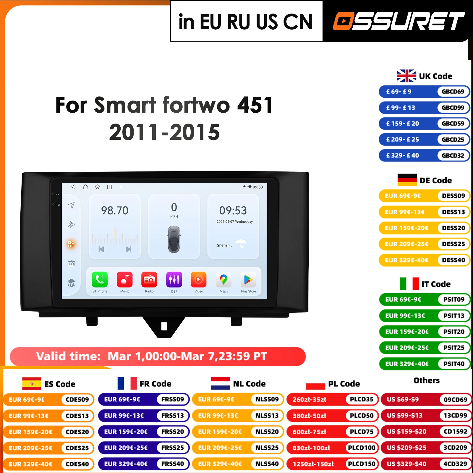 Carplay Android Auto 2Din Car Radio GPS for Smart Fortwo 2011-2015 Multimedia Video Player Navigation Stereo 9inch Autoradio DSP $29.99