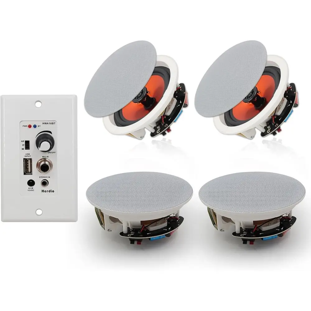 6.5 600W 2-Way Bluetooth In-Ceiling Speakers with Wall Amplifier Receiver for Home Theater or Office (2 Pairs, Paintable Grille) $148.59