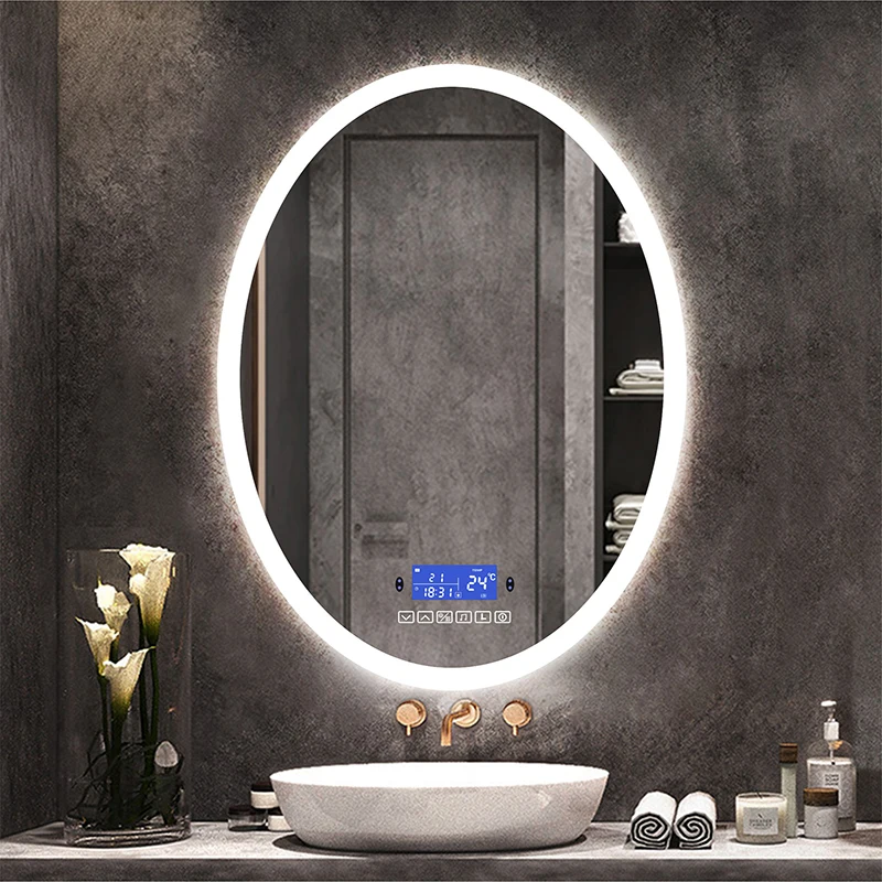 Bluetooth Speaker Smart Oval Bathroom LED Makeup Mirror With Three Color Light human body induction Anti-fog Beauty Mirrors $152.56