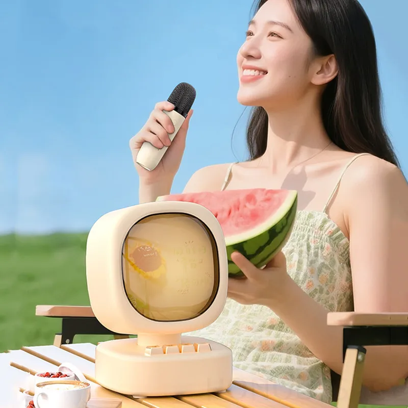 Ambient Light Creative Karaoke Speaker HIFI Stereo Retro Audios Household Children's Wireless Smart Bluetooth Speaker with Mics $16.66