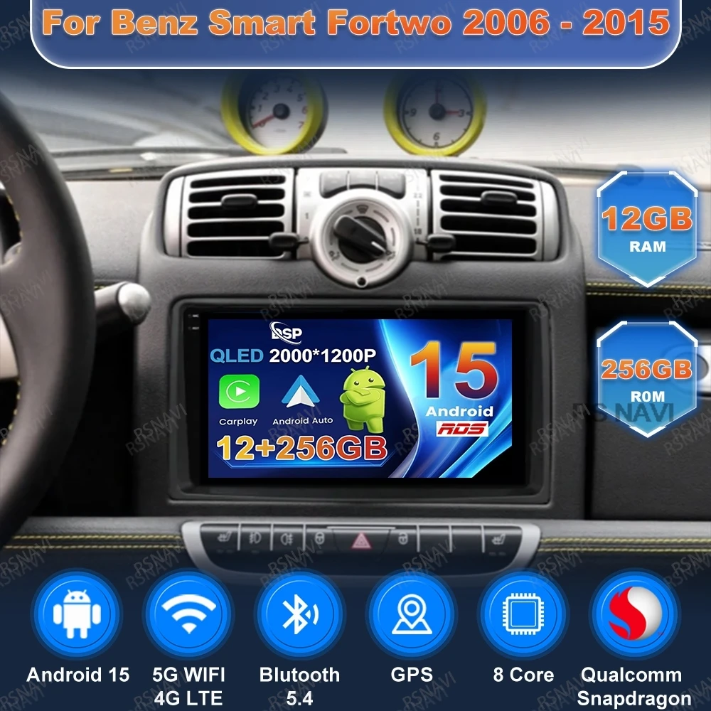 Android 15 Car Radio For Benz Smart Fortwo 2006 - 2015 BT Navigation Qualcomm 5G WIFI QLED DVD Stereo Autoradio 4G LTE Head Unit $113.06