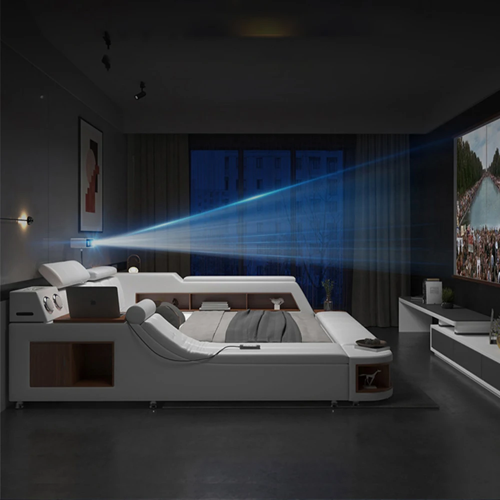 Luxury Tech Smart Ultimate Bed Frame, All In One Bed,Genuine Leather Upholstered Platform Bed with Speaker USB Storage LED Light $1,735.07