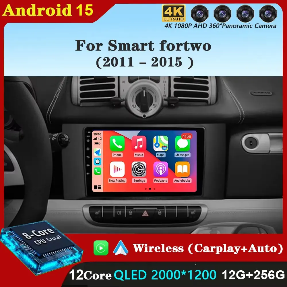 For Mercedes Benz Smart fortwo 2011 - 2015 Android 15 Carplay Car Radio Navigation Multimedia GPS Player Stereo WiFi 360 Camera $97.75