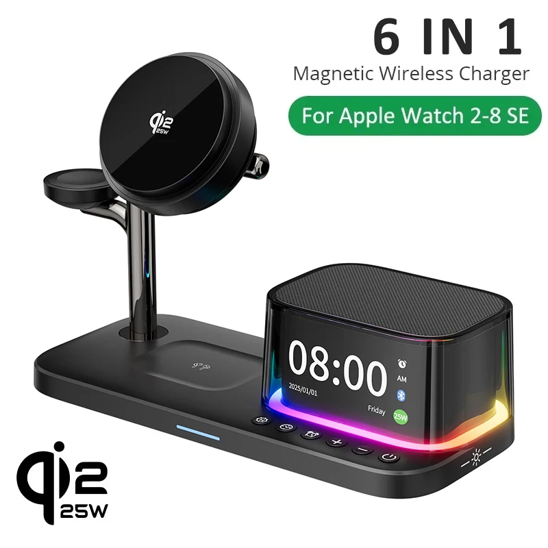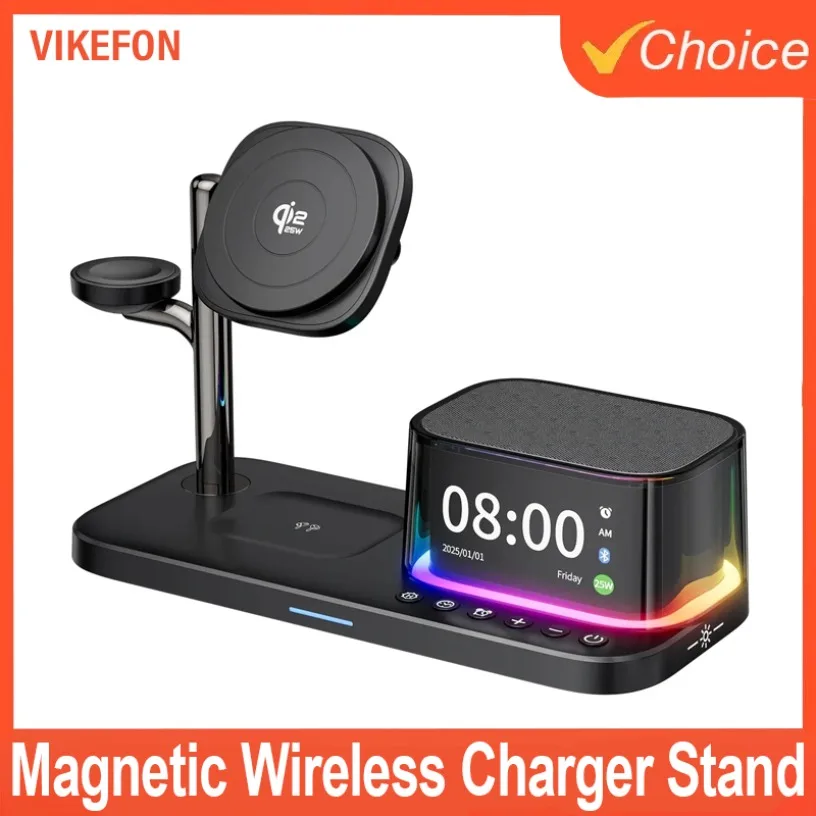 25W Qi2 Magnetic Wireless Charger Stand 5 in 1 Bluetooth Speaker For iPhone 17~12 Pro Apple Watch 9 Airpods Pro Fast Charging $44.27