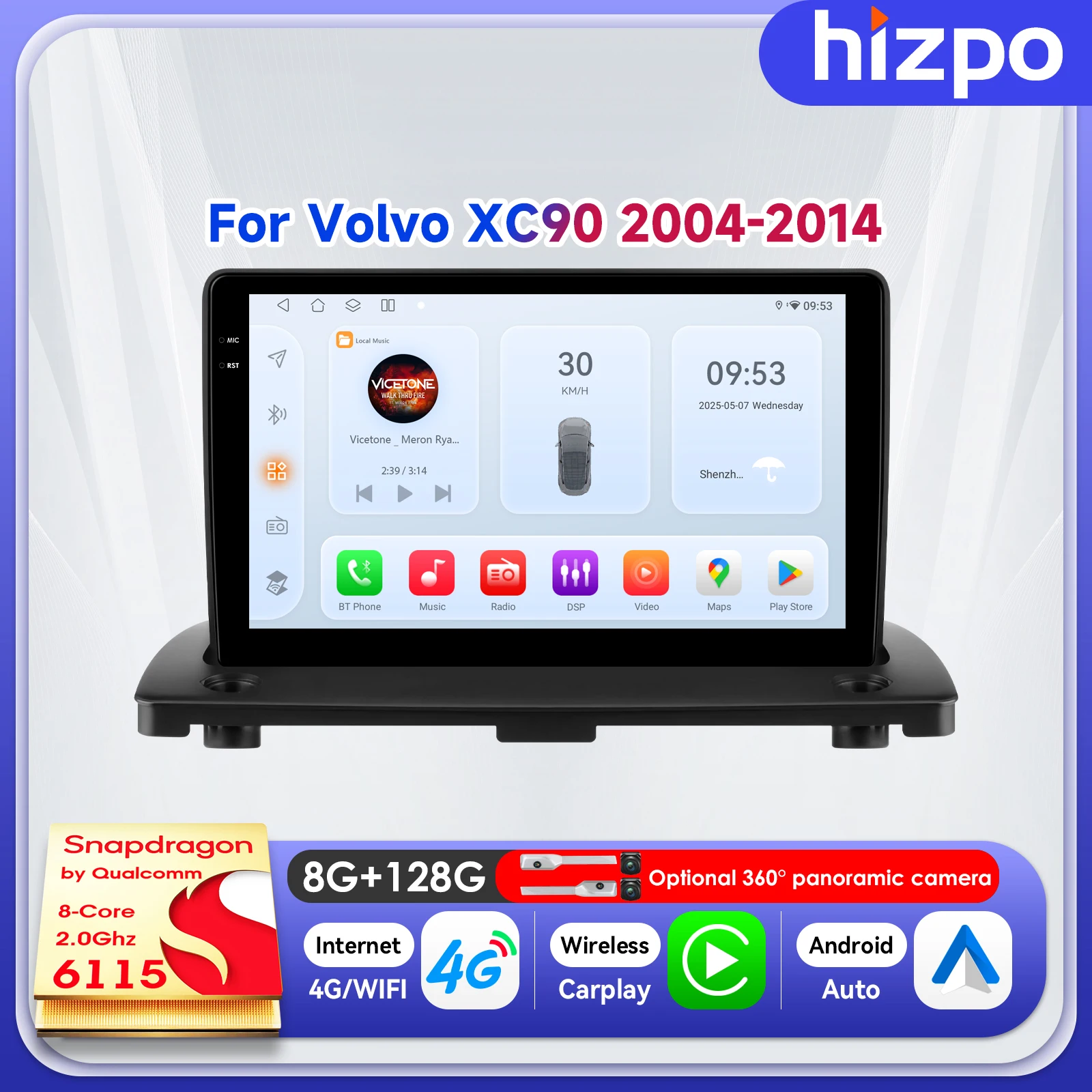 Hizpo 9" Smart Monitor Multimedia For Volvo XC90 2004 - 2014 QLED Screen Car Stereo BT Player SWC Navi 2din Carplay WIFI FM DSP $85.53