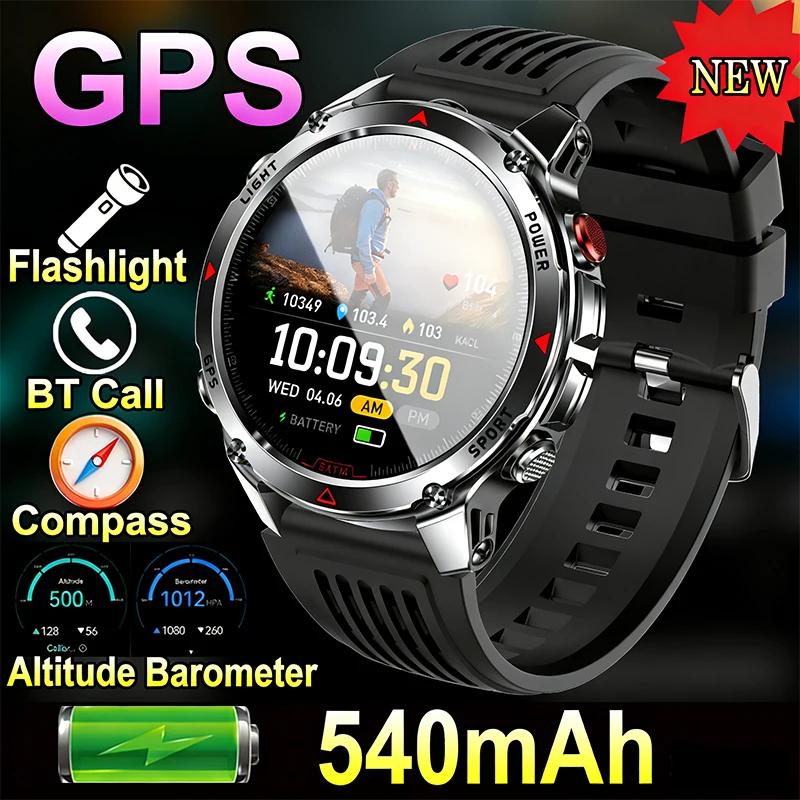 2025 Military Smartwatch For Men Bulit-in GPS Offline Maps Flashlight Compass Heart Rate BT Call 1ATM Waterproof Smart Watch $31.40