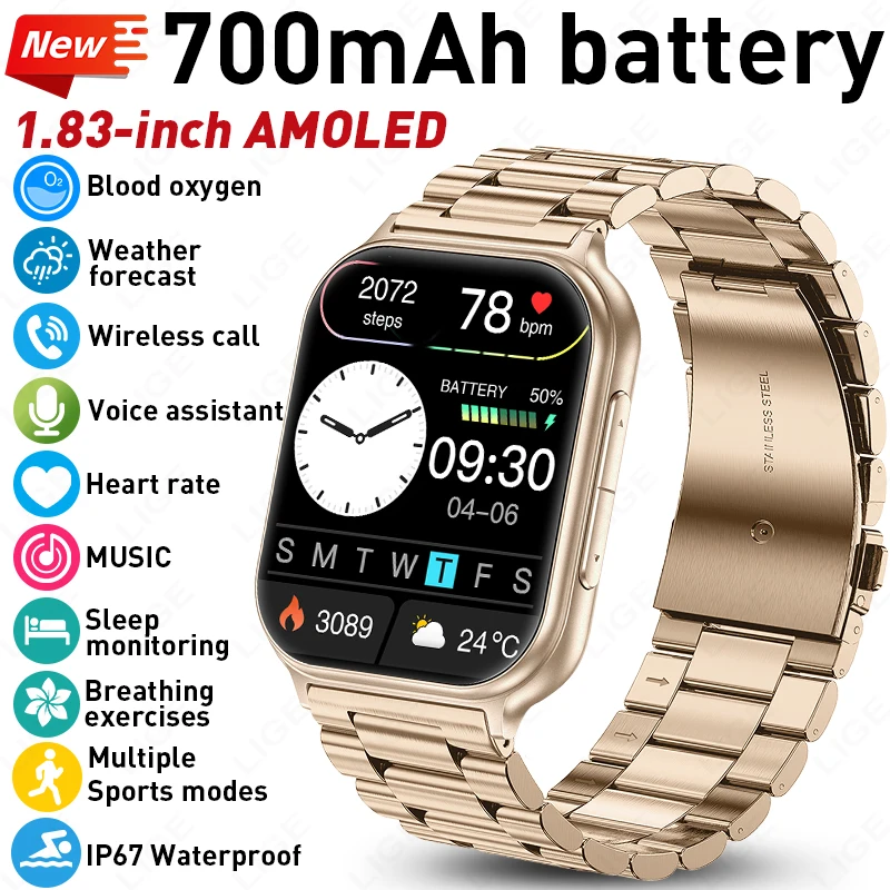 LIGE 700mah Sport Fitness Tracker Smartwatch Full Touch Screen Smart Watch For Men Bluetooth Call IP67 Waterproof Watches Lady $22.39