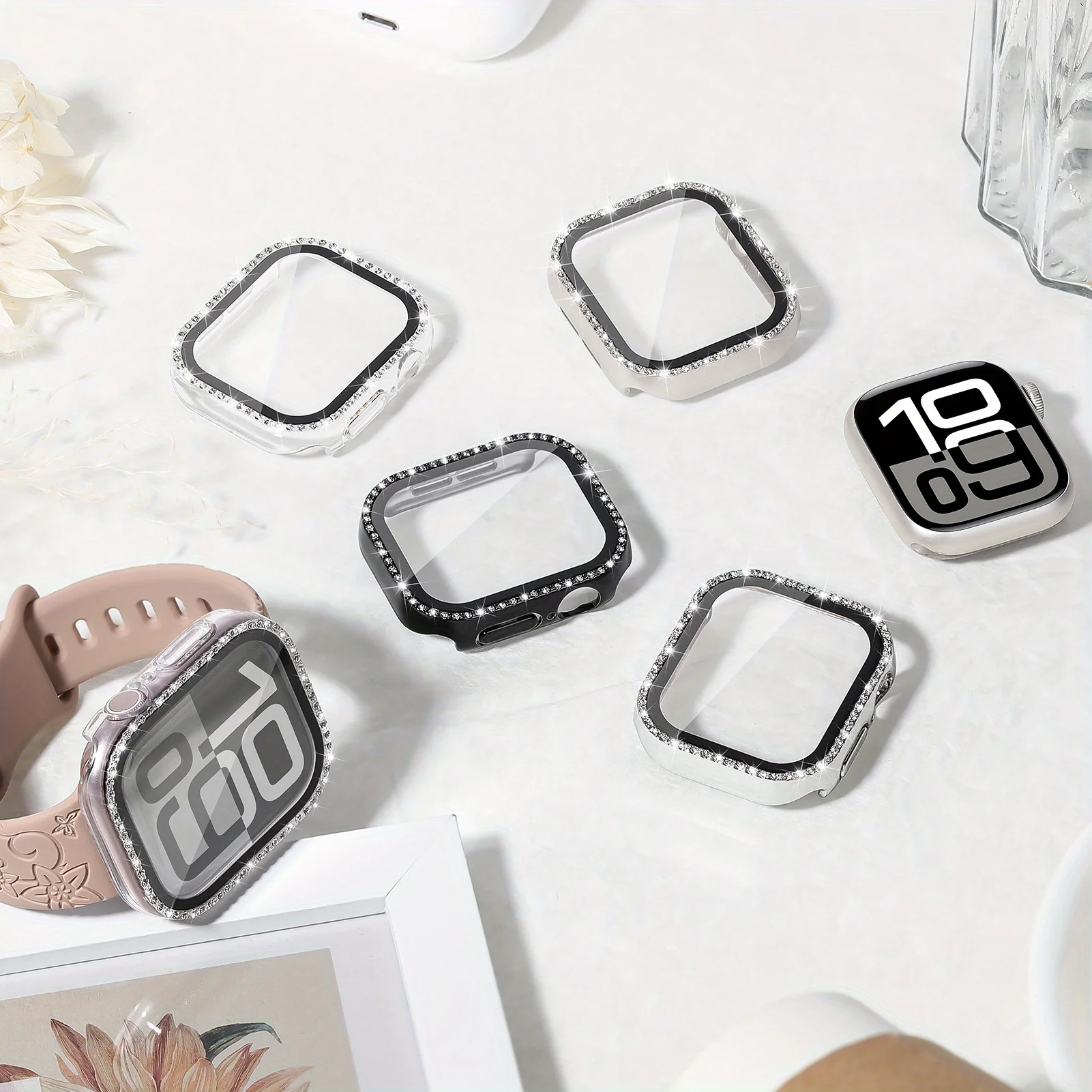 Glass+Diamond Cover For Apple watch 10 case 42mm 46mm 40mm 44mm 41mm 45mm Bling Bumper Protector iWatch series 9 4 5 6 7 8 se $3.34