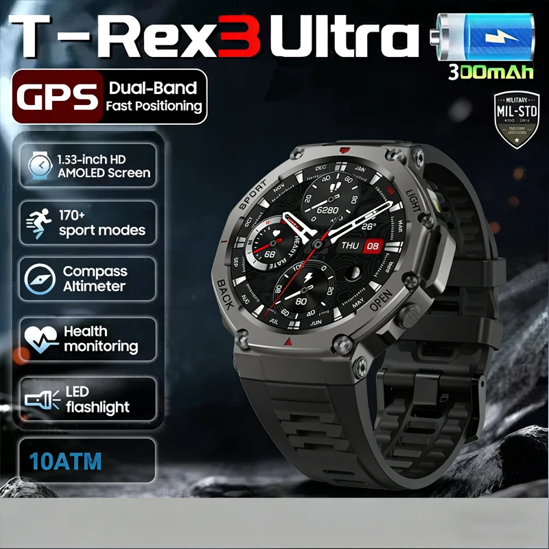 2026 New T-REX3 Long Standby SmartWatch 10ATM Waterproof GPS Bluetooth call 1.53" AMOLED HD Sports Flashlight Smart Watch Men $22.73