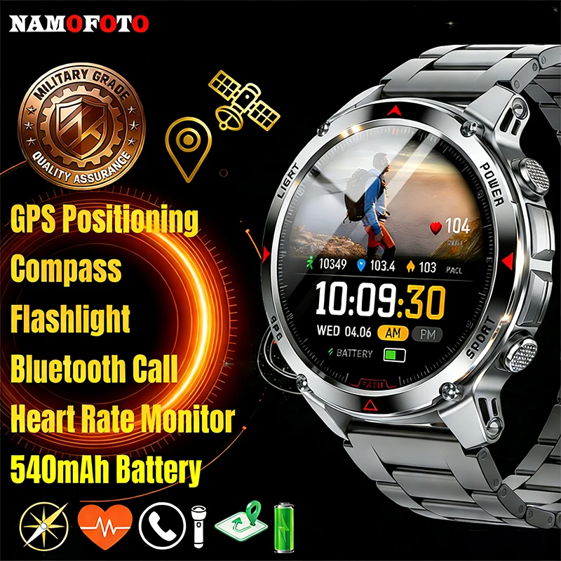 New GPS Compass Smart Watch Men Women Outdoor Sports Military-grade Wrist Call Watch 540mAh Strong LED Flashlight HR Smartwatch $24.13