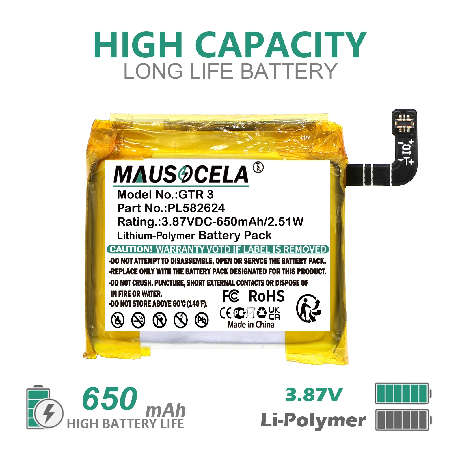 Smartwatch Battery For Amazfit:PL582624,GTR 3,GTR 3 Pro,A2040,A2039 , 650mAh / 2.51W,Li-Polymer,3.87V $9.06