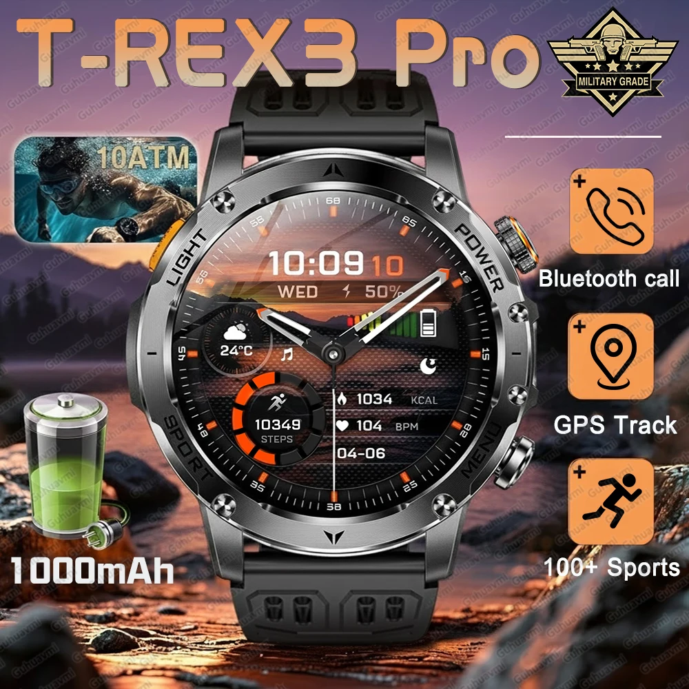 T-Rex3 Pro New 1000mAh Ultra Durable Smart Watch Men Outdoor Military GPS 10ATM Waterproof HD Bluetooth Call Sports Smartwatch $39.89