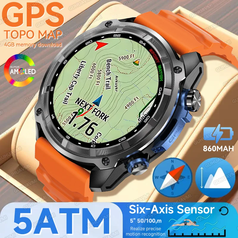 New Outdoors GPS&TOPO Map Smart Watch 4GB RAM AMOLED Screen Dual-Band AGPS 860mAh Swim 6-axis sensor 10ATM Waterproof Smartwatch $51.04