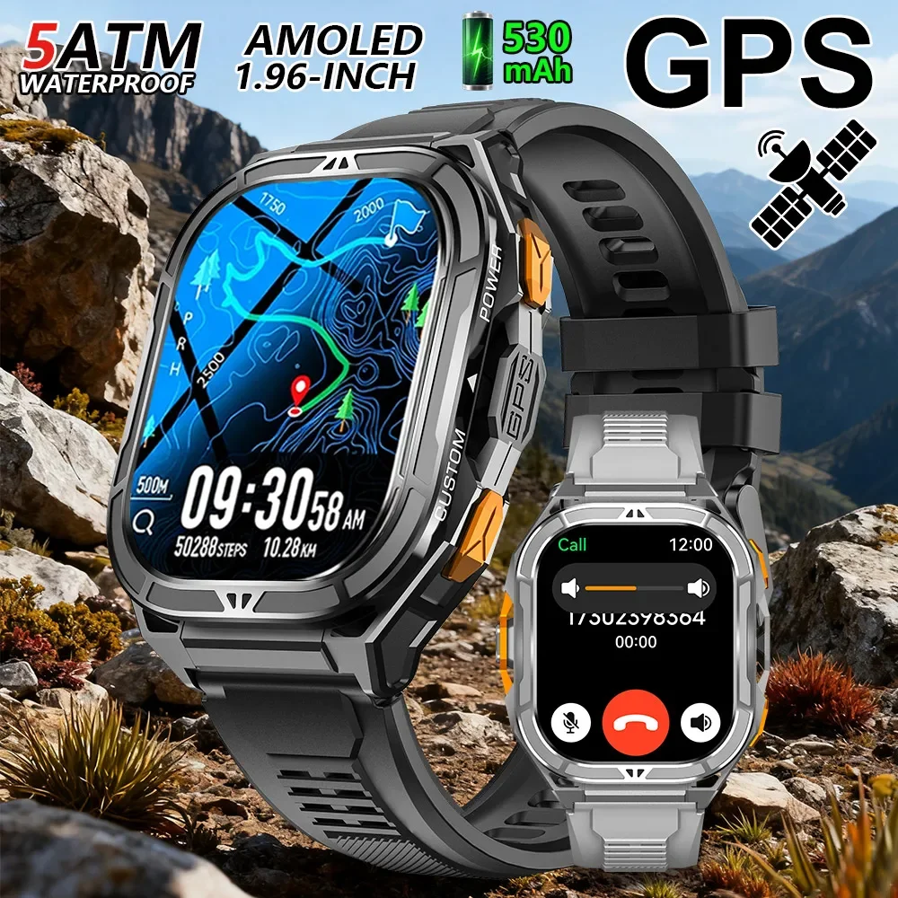 2025 New Square Smartwatch For Man GPS 1.96inch AMOLED Screen Compass Bluetooth Call 5ATM Waterproof Sport Smart Watch Android $46.89