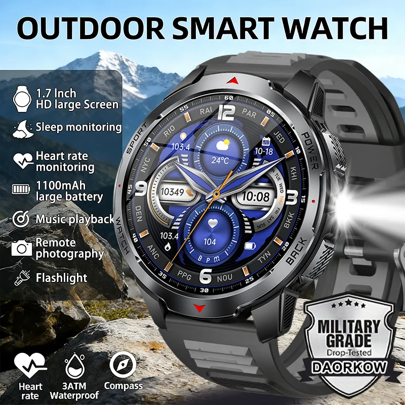 2026 NEW Smartwatch Men Compass 1100mAh Large Battery LED Flashlight 3ATM Waterproof Bluetooth Call Heart Rate Sports Smartwatch $22.33