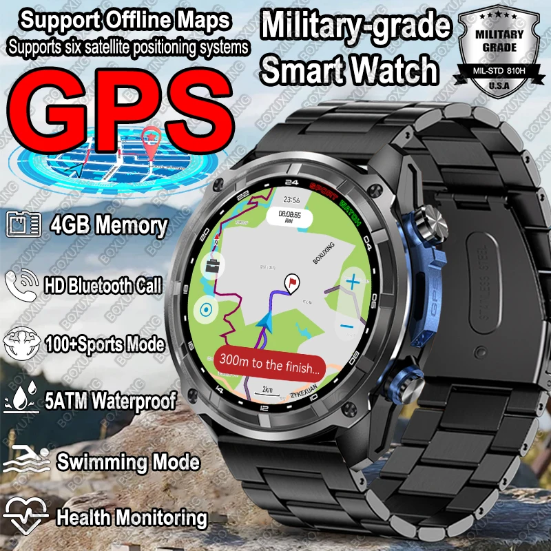 New GPS Military Smart Watch Men Offline Maps 5ATM Waterproof 4GB Memory 860 mAh Video Player Compass Swimming Sports Smartwatch $6.59