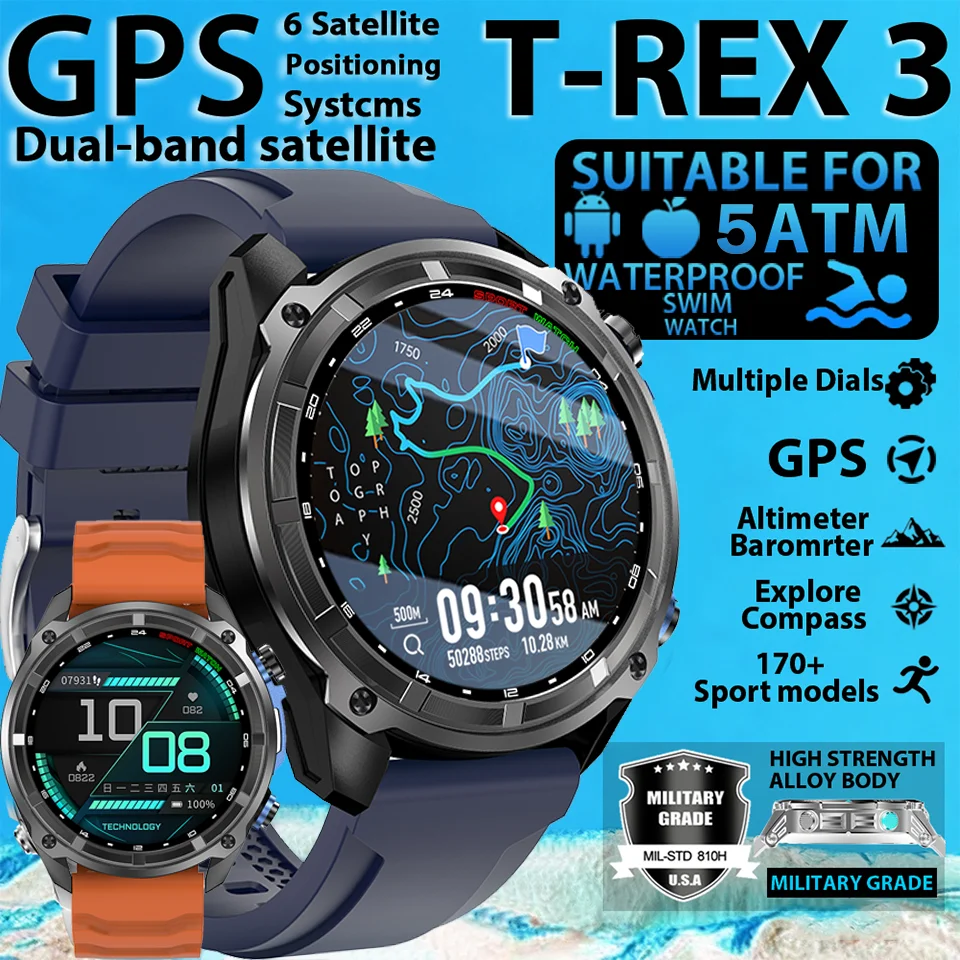 2025 New Military T-Rex 3 Ultra GPS Smart Watch 1000mAh Battery 10ATM Waterproof Compass Flashlight Sports trackr Smartwatch Men $44.90