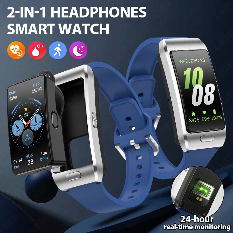 LIGE Smart Watch 2 In 1 TWS Headset 1.57" Men Women GPS Sports Fitness ECG Heart Rate Watches Bluetooth Call Music Smartwatch $15.82