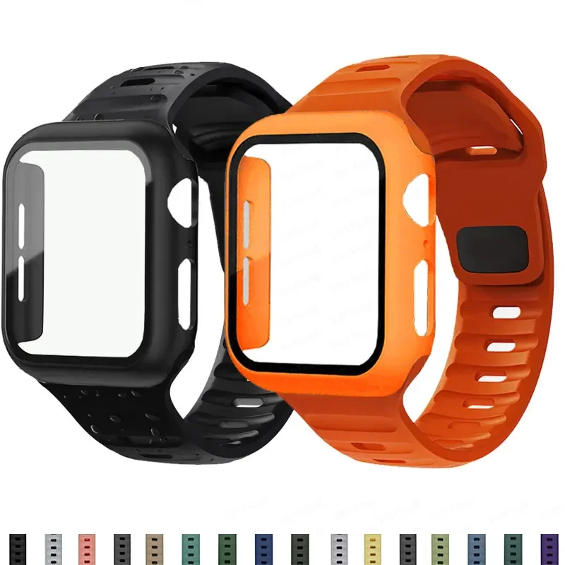 Glass+Case+Strap For Apple Watch Band 44mm 40mm 45mm 41mm 38mm 42mm Smartwatch Silicone Sport Bracelet iWatch 3 4 5 6 SE 7 8 $19.82