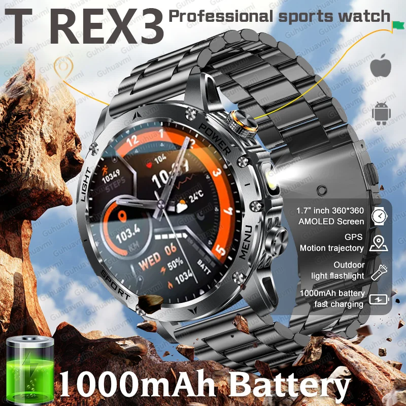 T-Rex 3 New Smart Watch Men 1000mAh Battery Outdoor Flashlight Clock Bluetooth Call Military Waterproof Sport Fitness Smartwatch $35.34